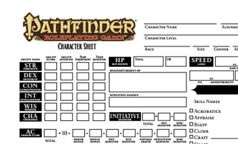 For some important context that probably should have gone earlier in this article, this is the Pathfinder 1st edition character sheet like I used when I started in the hobby: